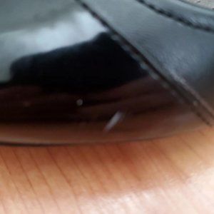 Lifestride Quilma Black Shoes Size 8. These shoes will need some black shoe polishing to get them looking good and spiffy. They will get you through in a pinch for sure. See pictures for detailed areas that need polish.