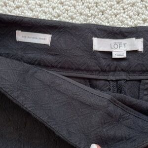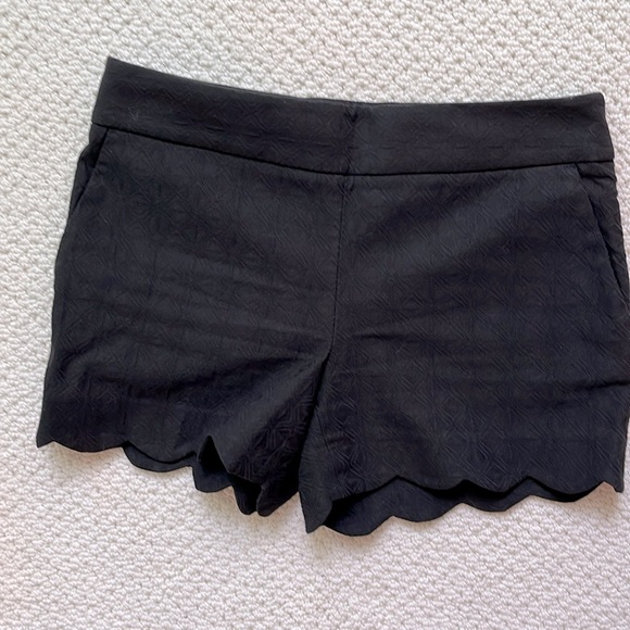 Cute, black pattern stretch, scalloped edge, high waist shorts. Slit pockets, hidden zipper. Excellent condition