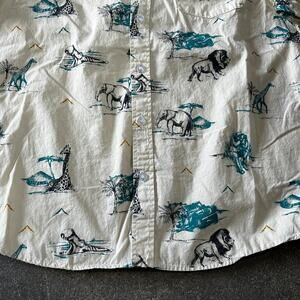 Lifted Research Group LRG Shirt Mens L Tan Safari Giraffes Short Sleeve Button