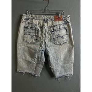 Keywords: denim shorts, acid wash shorts, mens shorts, cut off shorts, frayed hem shorts, casual shorts, vintage shorts, LRG shorts, Lifted Research Group, blue denim shorts, size 40 shorts, summer shorts, beach shorts, distressed shorts