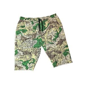 Lifted Research Group Drawstring Waist Baggy Camo Sporty Shorts Men Size L Green Raw Hem
