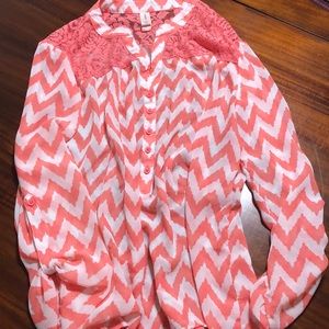 Long sleeve or 3/4 sleeve. Lace top. 3/4 button down.