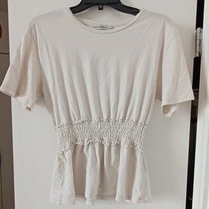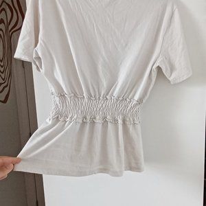 Light Before Dark Cream Ruched Cinched Short Sleeved Top Sz S