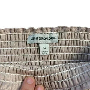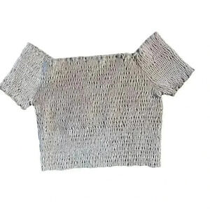 The Light Before Dark Women's Cropped Blouse in Pink is your go-to for effortless style and comfort. With its off-the-shoulder neckline and regular fit, this solid-patterned blouse is perfect for casual outings, brunch dates, or a night out with friends. Made from a blend of polyester and elastane, it offers a soft, stretchy feel that moves with you. Plus, it's machine washable for easy care. This pre-owned blouse has been uniquely altered into a halter top; please refer to photos for details.