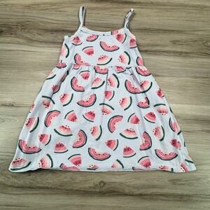 Old Navy girls sleeveless dress features a playful all-over watermelon print on a soft cotton jersey fabric. Designed with a comfortable empire waist and thin spaghetti straps, this lightweight piece offers a relaxed fit perfect for warm weather. The gathered skirt adds gentle volume, while the breathable knit material ensures all-day comfort during summer outings or casual play.