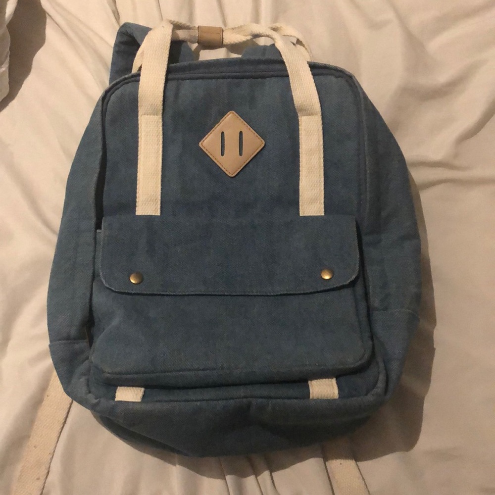 Light blue backpack with thick straps. White and beige detailing Like Brand New! Used a couple of times but in excellent condition