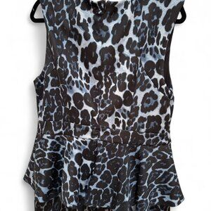 Light blue and black leopard print peplum with pencil skirt cut dress. Perfect party dress! You'll be the life of the party in this, so cute and colorful. Removed tags and tried on, never worn it out. NWOT. Super flattering when on, it's just not my style any more.