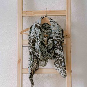 Light Blue & Black Scarf with Geometric Pattern