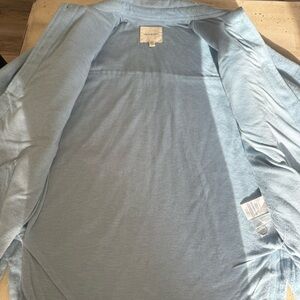 Thread and Supply. Size XS. Stylish light blue button-up jacket with front pockets and black buttons. Warm and lined. Super soft.