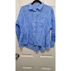 Light Blue Button-Up Long Sleeve Hi -Lo Women's Linen Shirt Size S
