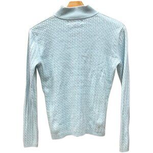 Light Blue Cable Knit Sweater Long Sleeve Mock Turtleneck Top Ribbed Fall Medium