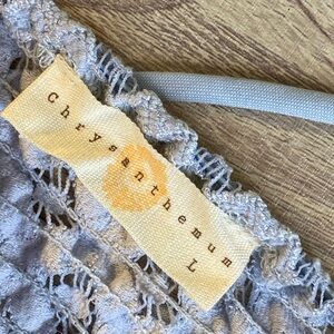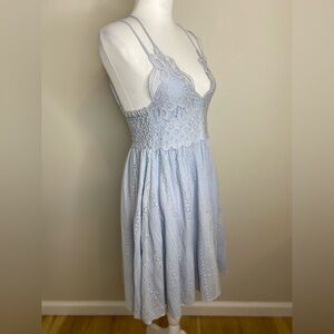 Light Blue Chrysanthemum Embroidered Strappy Cotton Lace Dress Size Large