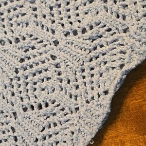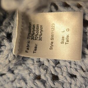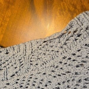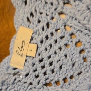 Stylish light blue crochet knit top. Perfect for layering. excellent condition, size L.