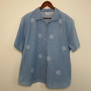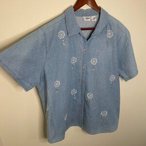 Light Blue Denim 100% Cotton Daisy Embroidered Shirt
