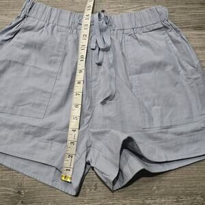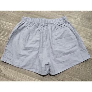 Light Blue Denim 100% Cotton Elastic Tie Waist Shorts w. Large Pockets. Excellent preowned condition.