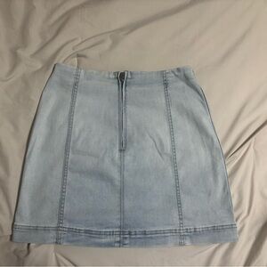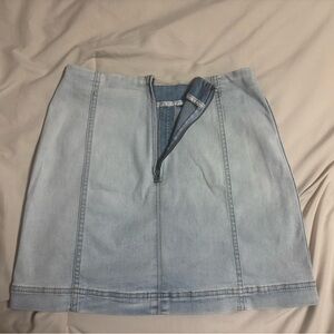 Simple yet styled light blue denim mini skirt. Trendy. Stretchy, not real denim feel. Perfect for casual outings or a day at the office, simple dress up for high school events. Zipper works great. Good as new condition.