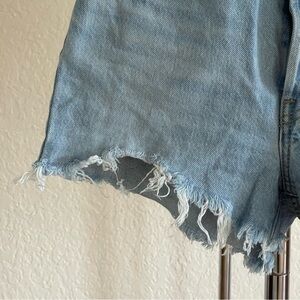 Stylish and comfortable light blue denim shorts perfect for casual outings. Features a classic design with a frayed hem for a trendy look.