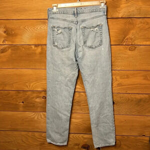 Stylish and comfortable, these light blue distressed jeans are perfect for a casual day out. The classic design offers a versatile look that pairs well with any top.