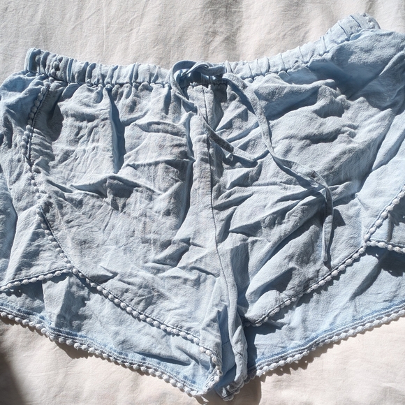 Comfortable light blue shorts with a drawstring waist. Perfect for casual wear.