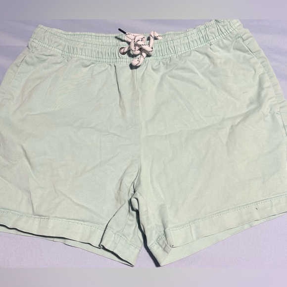 Comfortable light green shorts with a drawstring waist. Perfect for casual wear.