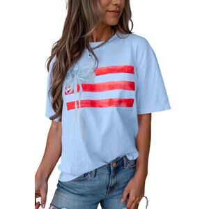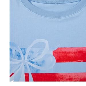 Light Blue Flag Bow Graphic Crewneck Top New Sizes S M L XL