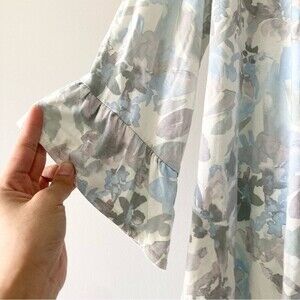 Small Light Blue Floral Print Knit Cardigan with crocheted trim and ruffles