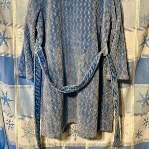 Stay cozy in this mid-length robe with a high collar, pockets, and robe tie.