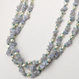 Light Blue Gemstone Freshwater Pearl Multi-Strand Necklace Sterling Silver 925