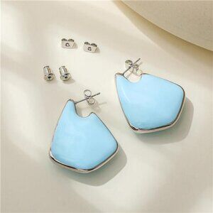Stay on-trend with these influencer-favorite fin earrings that are taking social media by storm! Featuring a unique geometric design in light blue with 18k gold plating, they bring bold style while staying comfortable enough for everyday wear.