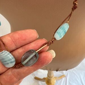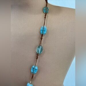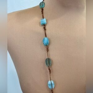 Light Blue Glass Beaded String Knot Long Necklace Beach