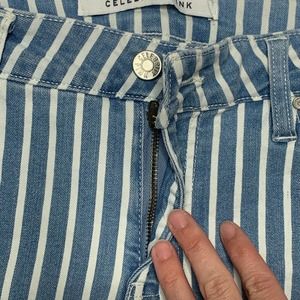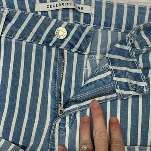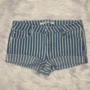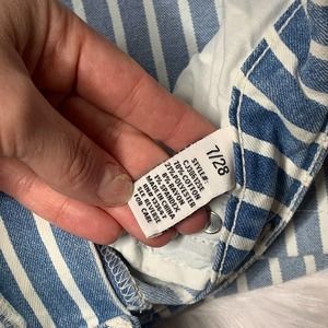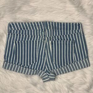 Light blue Jean shorts with white vertical stripes. Bottom hem is folded and stitched. Only worn a couple of times.