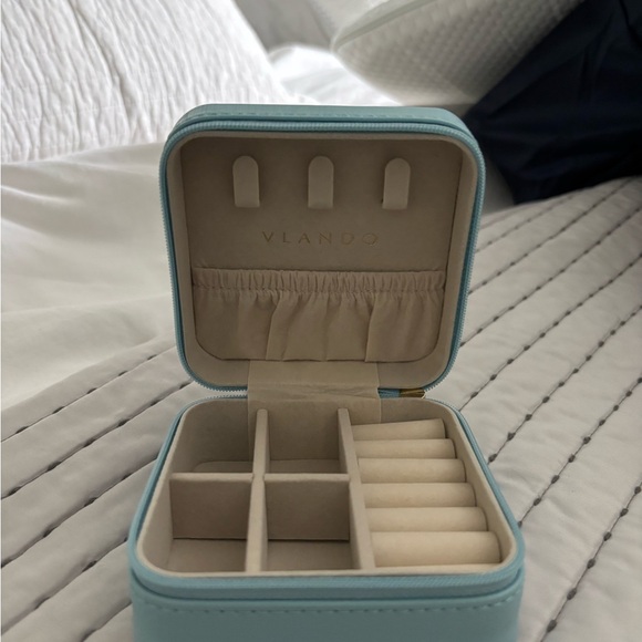 Organize your jewelry with the Light Blue Jewelry Organizer Case. This elegant case features multiple compartments for easy storage and access.
