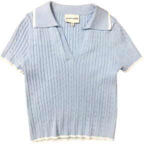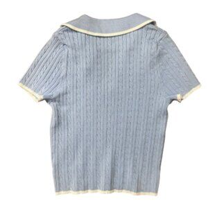 NEVER WORN - Stay cute and chic with this coordinated light blue knit set, size S! Features a collared crop top with a flattering fit and a matching pleated mini skirt for a playful, preppy vibe. Perfect for brunch, casual outings, or stylish daywear. Soft, comfortable knit material makes this set easy to wear while looking effortlessly put together.