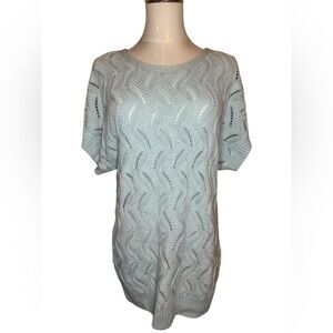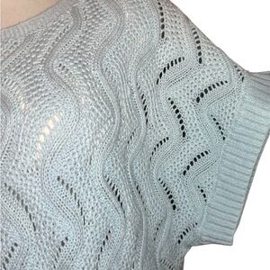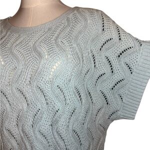 Cozy light blue knit sweater with a wave pattern. Perfect for casual wear.