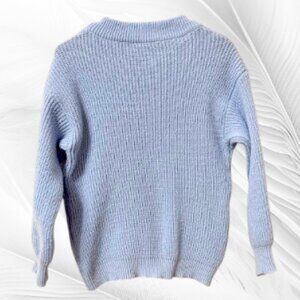 Soft light blue knit sweater with a classic V-neckline. Cozy textured knit with long sleeves and ribbed cuffs and hem for a comfortable, flattering fit. Easy to style for everyday casual outfits, layering, or a minimalist wardrobe. Lightweight yet warm — perfect for fall and winter wear.