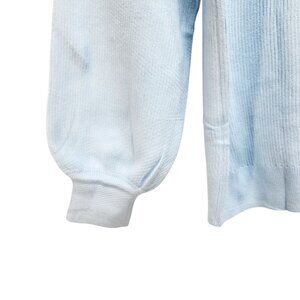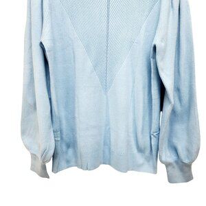 Light Blue Knitted Pullover Sweater Womens Size 2XL Ribbed Pattern Puff Sleeves