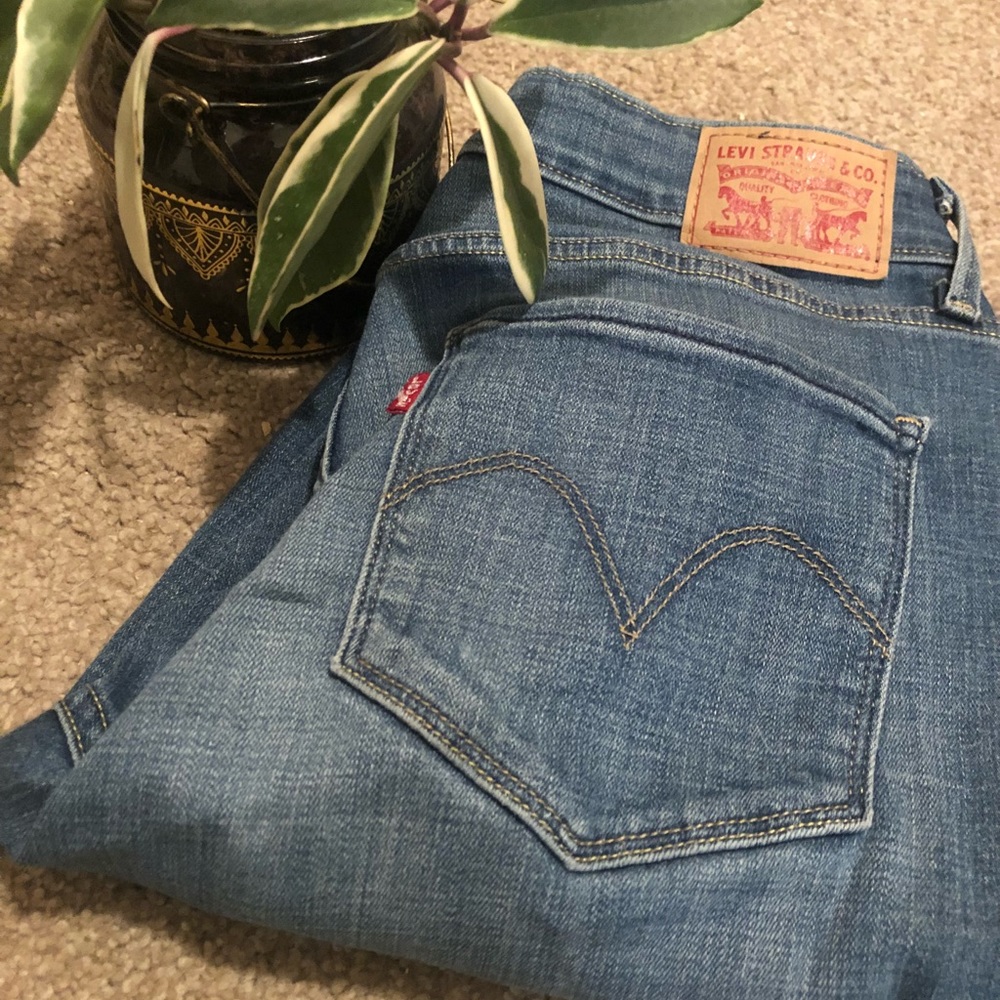 Light blue Levi’s with a very comfortable wear, mildly worn, compliments curves and most style choices