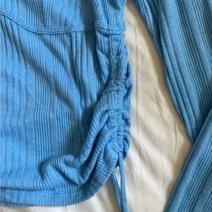 Chic light blue ribbed knit top by Bar III. Ties on the sides to scrunch up or down. Love this, worn once