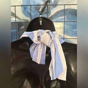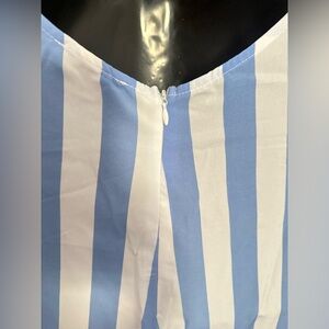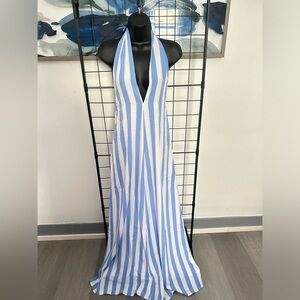 Light Blue Open Back Halter Tie Neck Zipper Closure Striped Detail Maxi Dress