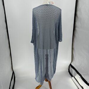 Light Blue Open Knit Cardigan Duster Made In Italy 100% Cotton Womens One Size