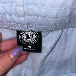 This shorts are a lightweight sweatshirt material. They are very soft and comfortable and fit a variety of sizes. They have only been worn a couple of times and are in excellent condition
