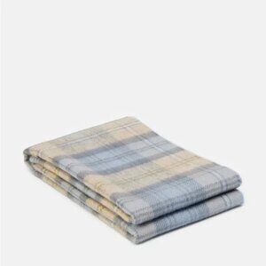 Johnstons of Elgin Scotland Lambswool Fringed Scarf Light Blue Plaid. 100% LambswoolFringed ends, made in Scotland. Lovely Luxe Designer scarf