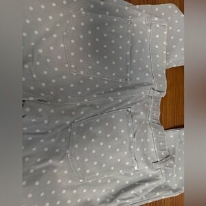 Stylish light blue jeggings with white polka dots. Perfect for casual wear.