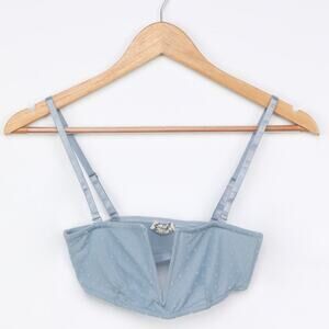 Light Blue Rain Free People Mesh Polka Dot Sierra Bandeau Bralette XS
