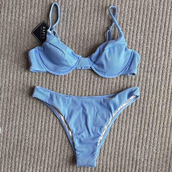 Light Blue Ribbed Bikini Set