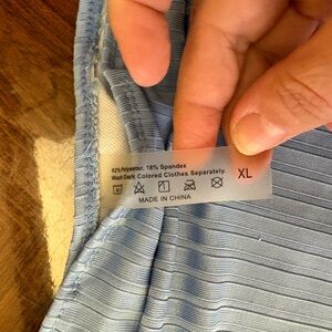 Stylish light blue ribbed bikini set. Features a flattering design with a textured finish. Both pieces XL, no brand listed in great condition.