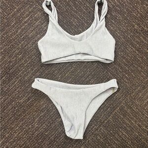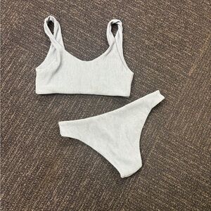 Stylish light blue ribbed bikini set. Perfect for beach days.