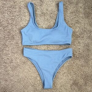 Experience comfort and style with this light blue ribbed bikini set, perfect for any swim occasion.
