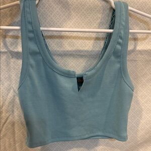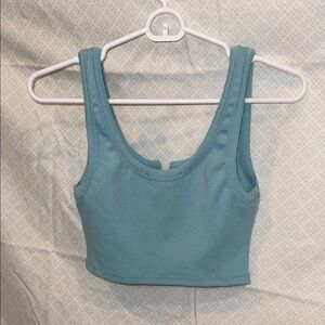 Soft ribbed crop tank in a light blue shade