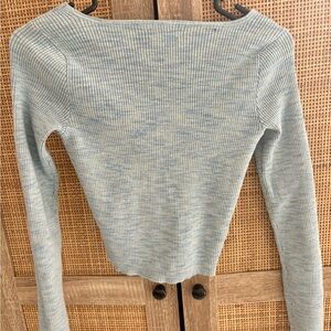 Cropped cardigan from BP, excellent condition. More blue than it comes across in pictures! With fitted cropped design perfect as a light layer or a trendy cropped button up top. Fitted design, ribbed, marl knit.